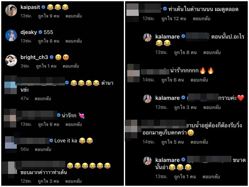 ในขณะที่เหล่าคนวงการบันเทิง อาทิ ไบรท์ พิชญทัฬห์ , ไก่ ภาษิต และ ดีเจเอกกี้ เข้ามาคอมเมนต์ฮากันใหญ่
