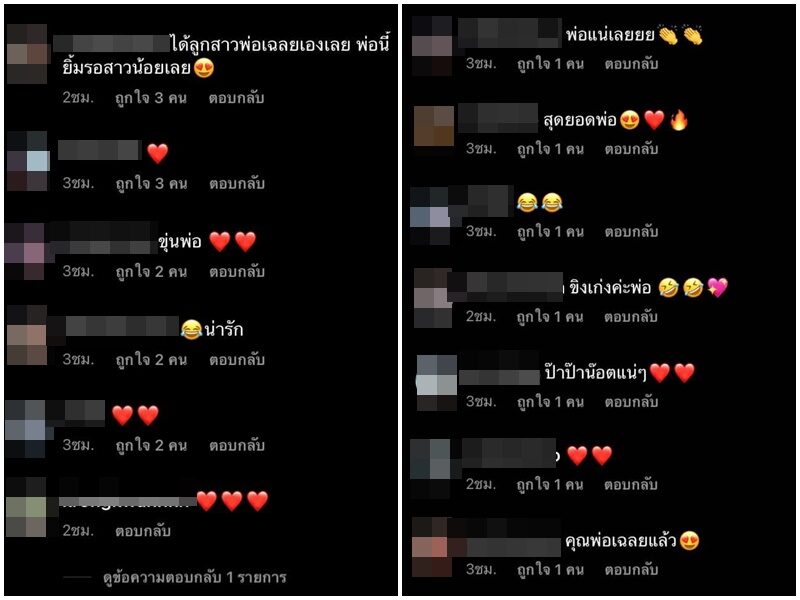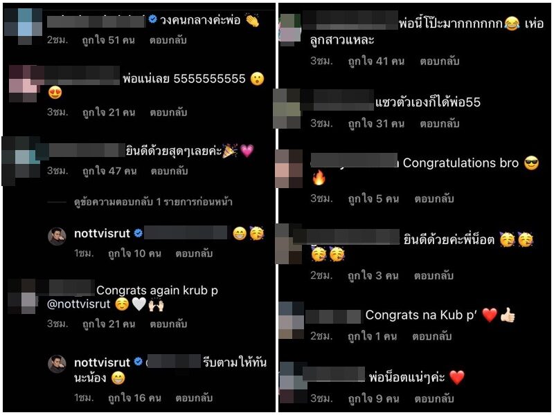 งานนี้บรรดาแฟนคลับคอมเมนต์เป็นเสียงเดียวกันว่า วงคนกลางพ่อแน่เลย ในขณะที่แฟนคลับจำนวนหนึ่งพากันแซวคุณพ่อน็อตสนั่น อาทิ พ่อนี้โป๊ะมากกกกกก เห่อลูกสาวแหละ , แซวตัวเองก็ได้พ่อ , ได้ลูกสาวพ่อเฉลยเองเลย พ่อนี้ยิ้มรอสาวน้อยเลย , ขิงเก่งค่ะพ่อ , คุณพ่อเฉลยแล้ว , ไม่ค่อยเห่อ และ พ่อโป๊ะตั้งแต่ชื่อพี่ชายละนะเห่อสุดๆไว้หนวดรอเลยพ่อ