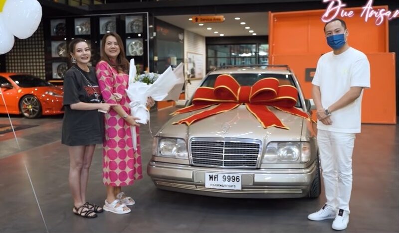 พอคุณแม่เปิดตามากลายเป็นรถเบนซ์คันใหญ่ ดิว แอบกระซิบกับทีมงานม๊าต้องงงแน่ๆ เก่ากว่ารถที่ใช้อีก ลูกเขยจูงมือไปดูรถ แม่ชมว่ารถสวย ม๊าบอกได้หมด ม๊าชอบ แม่ก็ต้องใช้ ดูมันภูมิฐานมาก เซบบอกให้ใส่น้องหมา