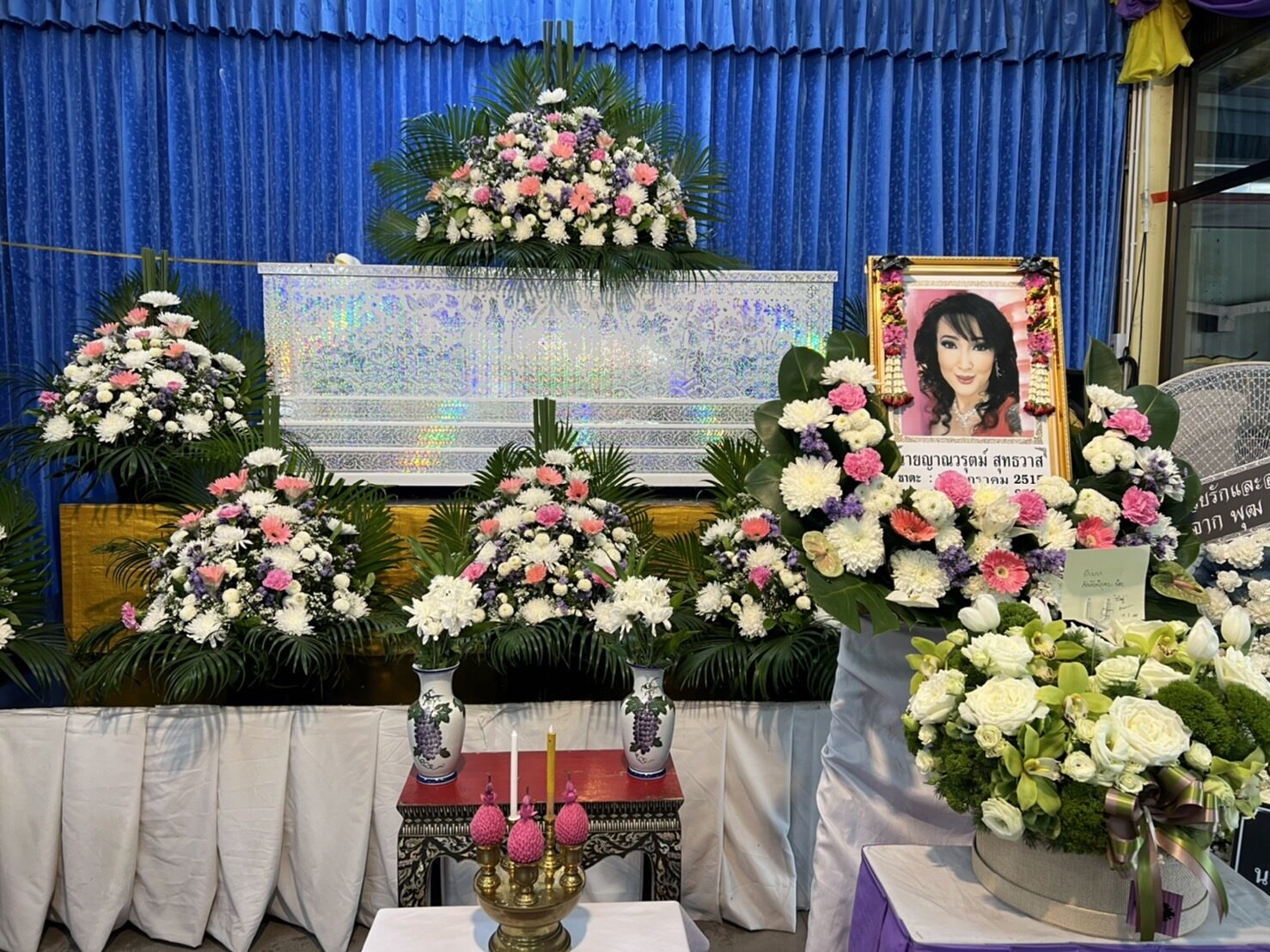 วันที่ 20 ก.ค. 65 ที่ศาลาหน้าเมรุ วัดเลา พระราม2 ริมคลองสนามชัย แขวงท่าข้าม เขตบางขุนเทียน กรุงเทพมหานครฯ สถานที่บำเพ็ญกุศลสวดอภิธรรมศพ ซันนี่ ยูโฟร์ หรือ นายญาณวรุตม์ สุทธิวาส อดีตสมาชิกวงบอยแบนด์ยูโฟร์ (U4) ในยุค 90s วัย 50 ปี ที่เสียชีวิตลงอย่างกะทันหัน ด้วยภาวระบบไหลเวียนโลหิตล้มเหลวที่คอนโดฯ ส่วนตัว