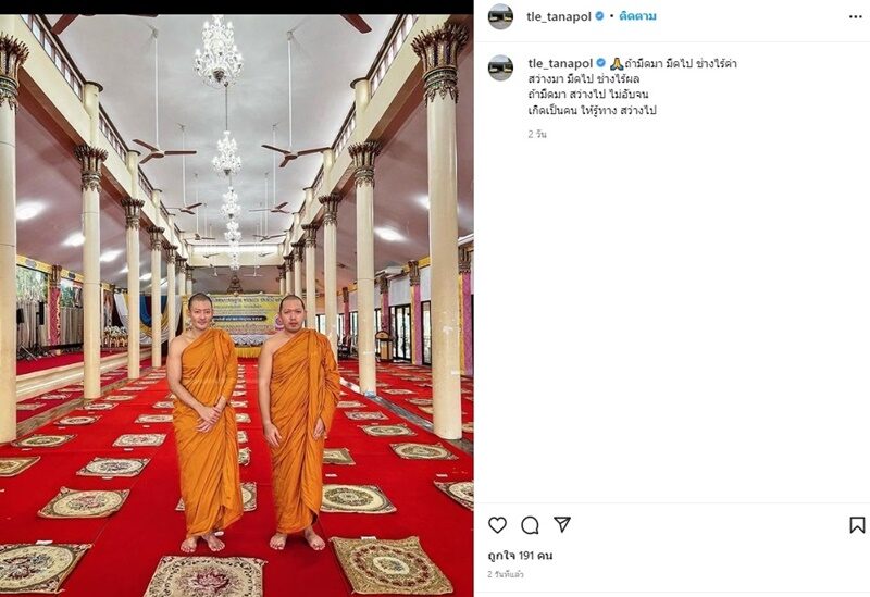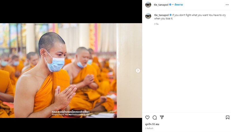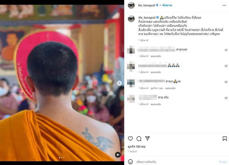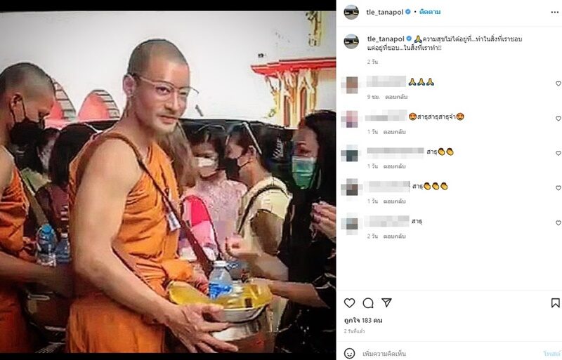 ละทางโลกเข้าสู่ร่มกาสาวพัสตร์มาตั้งแต่กลางเดือน เม.ย.65 ที่ผ่านมา พระเอก เติ้ล ธนพล ได้รับฉายาทางธรรม “ธนปัญโย” นั้น ล่าสุด อินสตาแกรม tle_tanapol เผยคลิป พระเติ้ล ธนพล ขณะอยู่ที่วัด พร้อมข้อคิดธรรมะว่า รู้จักคิด รู้จักจำ รู้จักทำ รู้จักถอย รู้จักคอย รู้จักทน รู้จักปรับ รู้จักรับ รู้จักให้