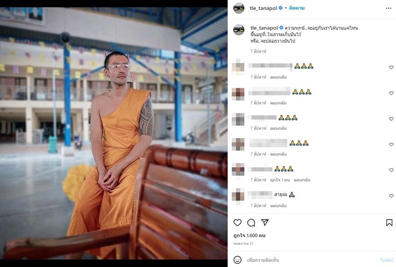 ความทุกข์…จะอยู่กับเราได้นานเเค่ไหน ขึ้นอยู่ที่..ใจเราจะเก็บมันไว้ หรือ..จะปล่อยวางมันไป เปิดภาพล่าสุด พระเติ้ล ธนพล พระเอกดังละทางโลกเผยข้อคิดธรรมะเตือนใจ