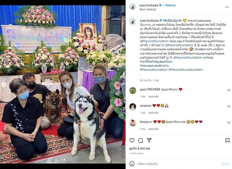 เก๋ ชลลดา โพสต์คลิปขณะพา 2 น้องหมาสุดรักของ ซันนี่ ยูโฟร์ มาที่วัดเลา พระราม2 ซึ่งจัดพิธีสวดพระอภิธรรมอดีตบอยแบนด์ดังเสียชีวิตกะทันหัน โดยเผยโมเมนต์เจ้าริชชี่และมันนี่มาหาแม่ พร้อมแคปชั่นถึงใครที่อยากอุปการะดูแลทั้งสองหมาสุดน่ารักด้วยว่า