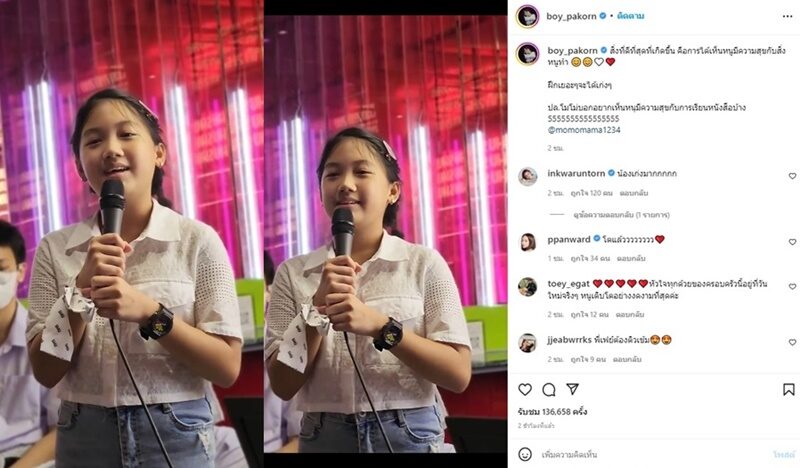 ก่อนจะโพสต์อีกว่า สิ่งที่ดีที่สุดที่เกิดขึ้น คือการได้เห็นหนูมีความสุขกับสิ่งหนูทำ ฝึกเยอะๆจะได้เก่งๆ ปล.โมโม่บอกอยากเห็นหนุมีความสุขกับการเรียนหนังสือบ้าง 5555555555555555 @momomama1234 โดย นักร้องเสียงดีอย่าง อิ้งค์ วรันธร ฟังแล้วยังต้องคอมเมนต์ว่า น้องเก่งมากกกกก