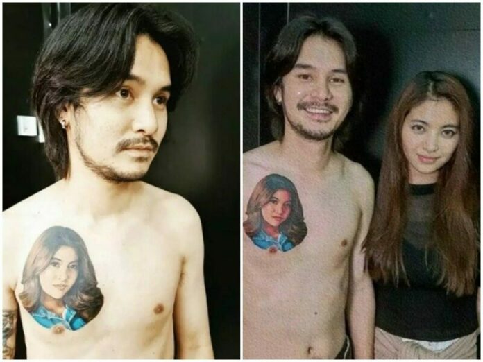 ถามถึงรอยสักรูปหน้าภรรยาตรงอกข้างซ้าย จะทำยังไง? “ถ้าซาดิสม์หน่อยก็เลเซอร์ก็ได้ ถ้าไม่ซีเรียสเก็บไว้ก็ได้ มองว่าเป็นงานศิลปะก็ได้ หรือจะแก้ด้วยการสักทับก็ได้ ตอนแรกผมคิดว่าผมจะไม่ทำอะไร ไม่ใช่ว่าอยากจะเก็บไว้หรืออะไร ผมมองให้เป็นงานศิลปะ แต่คนรอบข้าง หลายๆ คนเขาก็บอกว่า ต่อให้มองเป็นงานศิลปะมันก็อยู่ที่ตัวมึง เพราะฉะนั้นแล้วหาทางเถอะ จะลบจะทับหรืออะไรก็ได้”