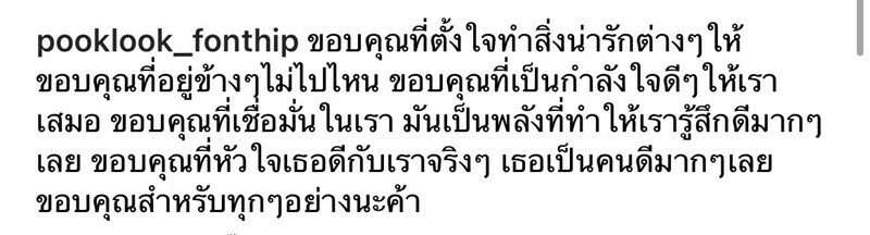 หนูก็เข้าใจแต่หนูก็เชื่อว่าสักวันหนึ่ง คุณก็จะค่อยๆ เข้าใจเอง เพราะบางทีรูปแบบความรักมันอาจจะไม่ใชรูปแบบสถานะที่ทุกคนคาดหวัง แต่ทำอะไร หนูก็ให้เกียรติเขาเต็มที่ เราให้เกียรติซึ่งกันและกัน”