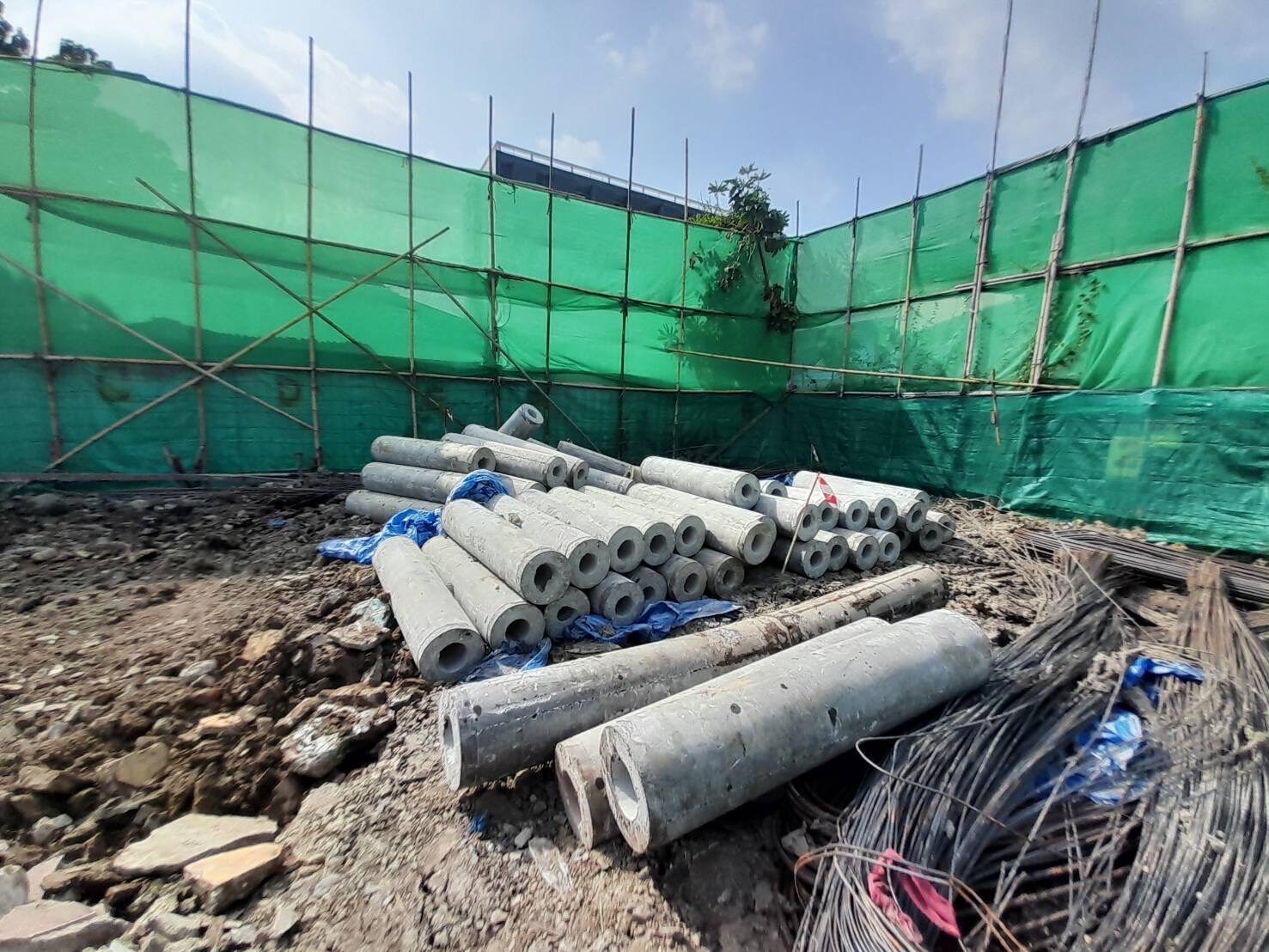 “ผมเลยปรึกษาทางวิศวกร เปลี่ยนวิธี และหยุดการทำงาน 1 เดือน สุดท้ายมาลงตัวด้วยเสาแบบไมโครไพล์ที่มีเสียงดังน้อยลง แล้วก็เป็นเสาสำหรับต่อเติมบ้าน ค่าใช้จ่ายสูงมากผมก็ยอมจ่าย ซึ่งเสาลักษณะนี้เป็นวิธีแบบกด ไม่ใช่วิธีกระทุ้งลงดิน ระหว่างการทำผมก็มีวิศวกรอยู่ด้วย เพื่อที่จะได้วัดแรงสั่นสะเทือน มีเป็นวิดีโอทั้งหมด เพื่อที่จะมายื่นให้ดูได้ว่าเราไม่มีเจตนาที่จะก่อกวน หรือว่าสร้างความเสียหายจริงๆ แต่เมื่อสร้างไปได้ไม่นานก็มีตำรวจเข้ามาในพื้นที่ เข้ามาบอกไม่ให้คนงานทำงานต่อ โดยผมก็พยายามเข้าไปพูดคุย ว่าผมตามทำกฎหมายในพื้นที่ของตัวเอง ทางตำรวจก็แจ้งว่าได้รับการร้องเรียกมา แล้วก็มาที่บ้านผมทุกวัน บริษัทเสาเข็มก็ถูกตำรวจโทรศัพท์ไปว่าห้ามส่งเสาเข็มมาที่นี่ ไม่งั้นจะโดนจับ บริษัทเขาก็กลัวและขอยกเลิกสัญญา มีความเสียหาย มีของทิ้งไว้เต็มเลย ผมก็ต้องหาเจ้าใหม่มาทำให้ ซึ่งเสาผมตอกไปแล้ว 30 ต้น ตอนนี้ค้างอีก 2 วัน ยังไม่ได้เกิดความเสียหายใดใดขึ้นมาเลย เพราะถ้าเกิดความเสียหายท่านก็สามารถที่จะสามารถที่จะแจ้งผม หรือฟ้องผมมาก็ได้ ระหว่างนี้ผมก็ไปพูดคุยขอความอนุเคราะห์ว่าขออีกแค่ 2 วันเท่านั้น ทางเขาก็ไม่ยินยอม”