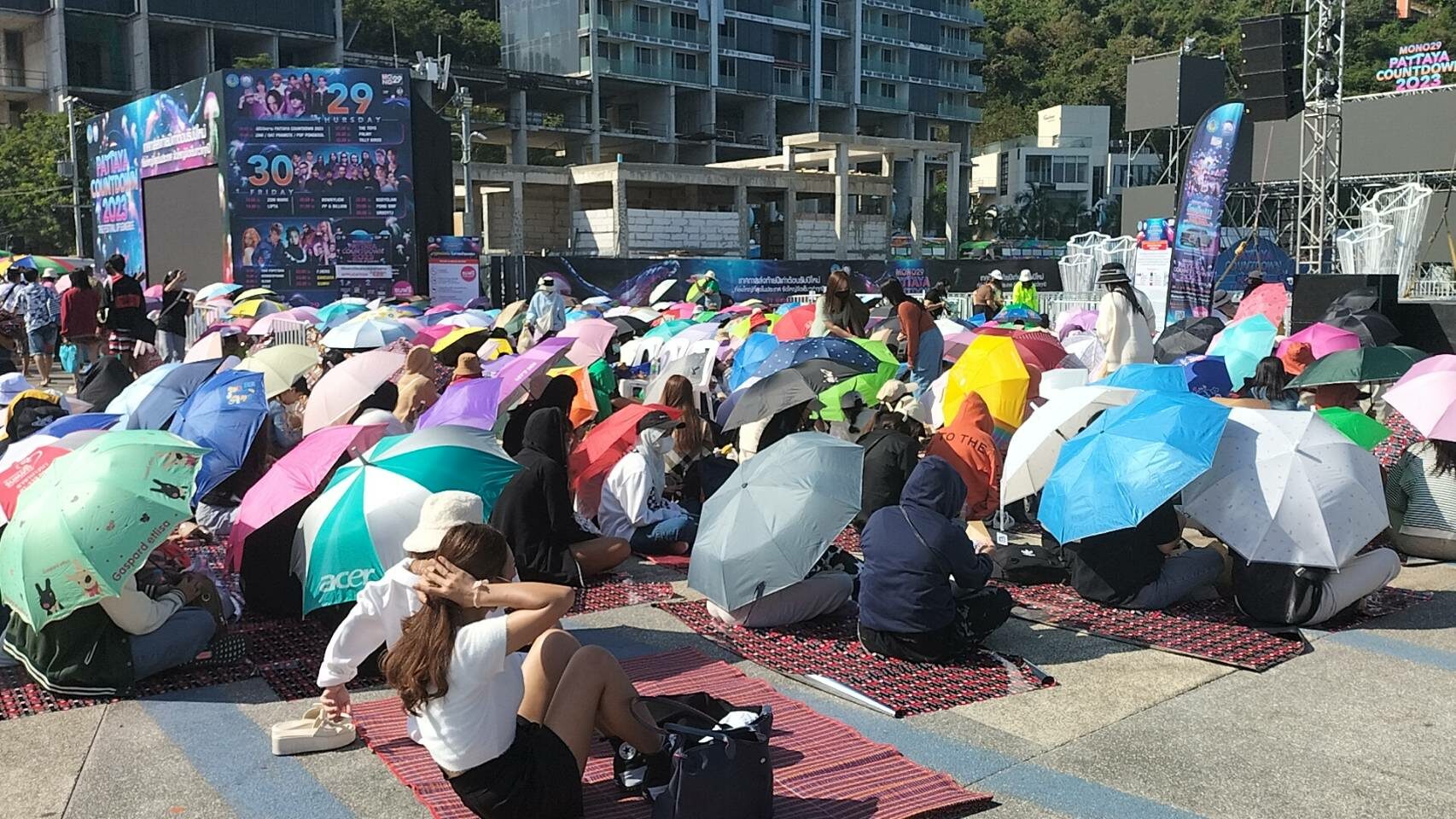 มารอแต่เช้า! อากาเซ่กางร่มเข้าคิวรอดู แบมแบม คืนนี้ งานเคานต์ดาวน์พัทยา