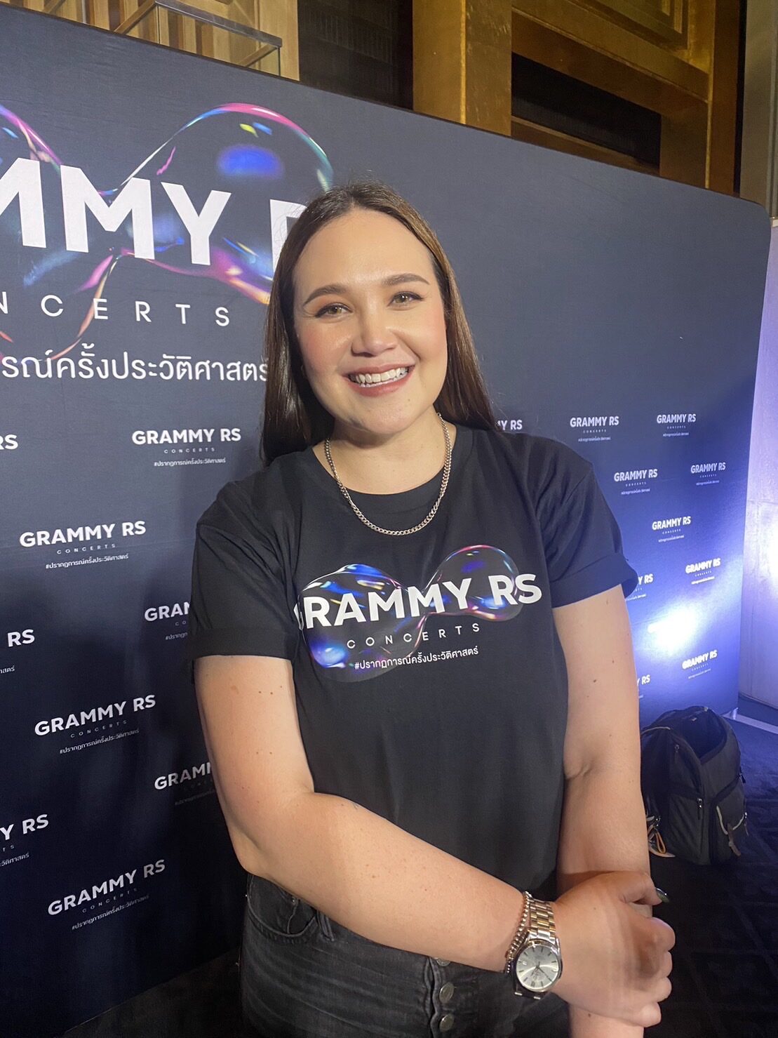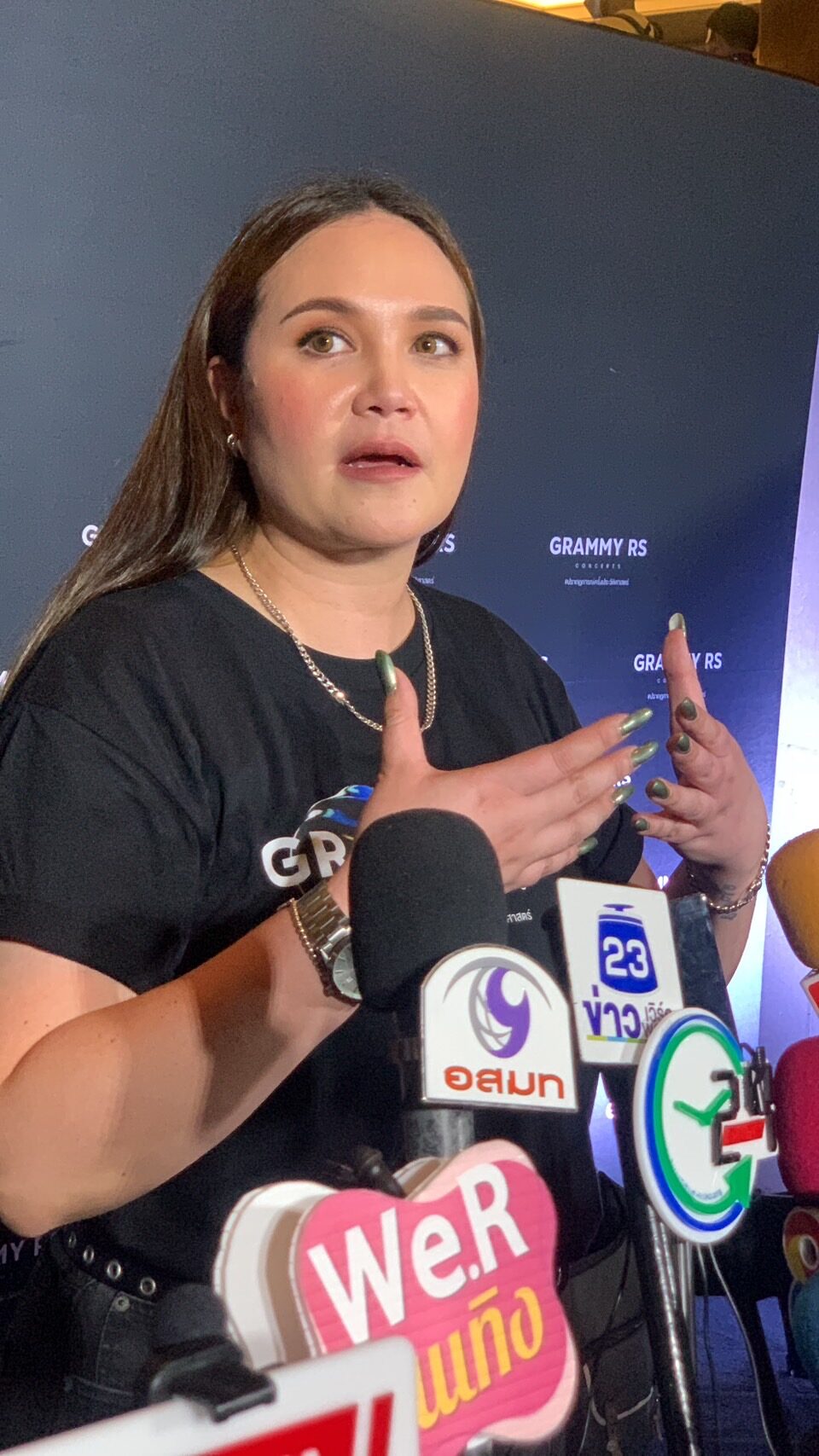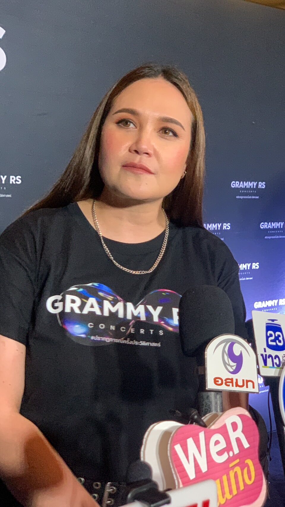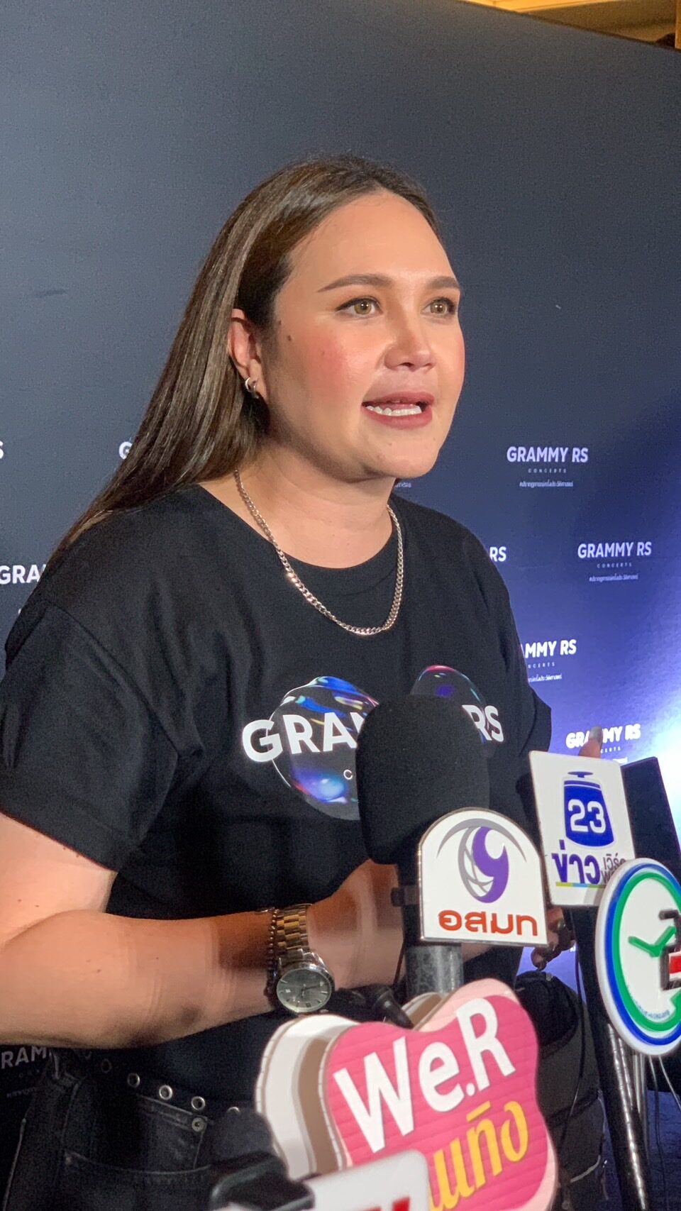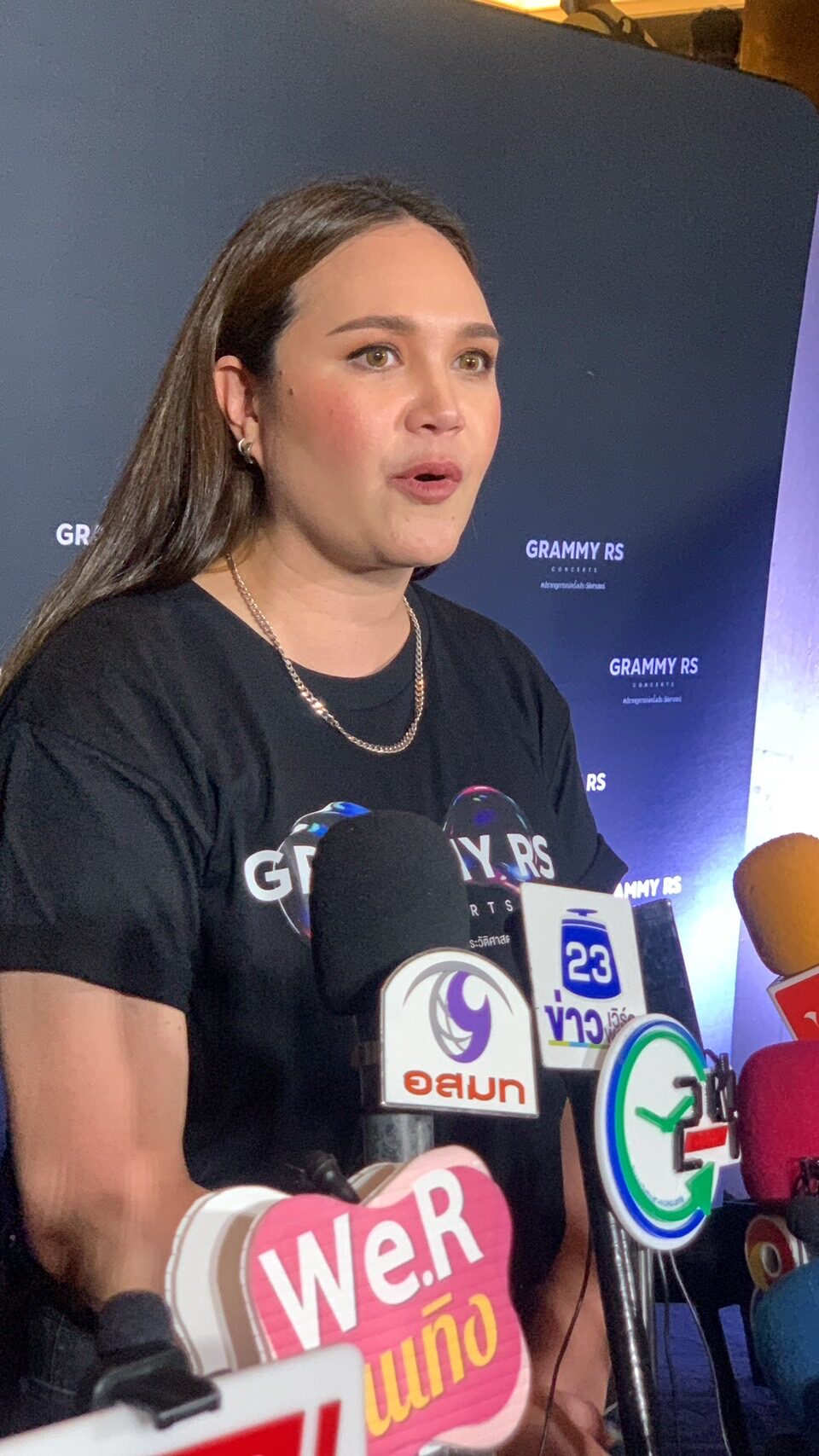 “ไม่ค่ะ ก็ขอขอบคุณนะคะ ก็ดีใจที่ทุกคนยินดี พูดยากจังเวลาต้องมาพูดคนเดียว(หัวเราะ)”