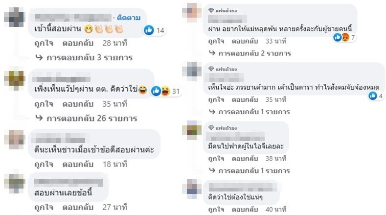 งานนี้ชาวเน็ตแห่คอมเมนต์สอบผ่านกันเลย อาทิ เช้านี้สอบผ่าน , เพิ่งเห็นแว๊ปๆผ่าน ตต. คิดว่าใช่ , สอบผ่านตั้งแต่บรรทัดแรก , ตอนนี้ฉันเริ่มไม่เลือกถูกระหว่างจะขี่เจ็ตสกีไปตลาดสะพานใหม่ , กล้ามากนะ ควงออกหน้าออกตา ไม่แคร์เมียไม่แคร์ลูกไม่แคร์สังคมเลย สงสัยจะหลงหนักมาก….พูดถึงผชข้างบ้าน , มีคนไปฟาดผู้ในไอจีเลยละ เป็นต้น