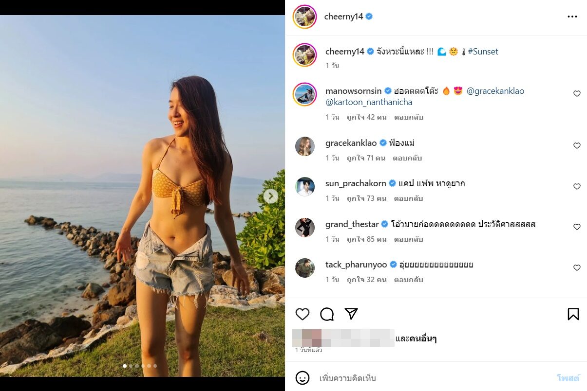 แคปไว้เลยหาดูยาก เชียร์ ทิฆัมพร อวดหุ่นแซ่บ ชุดบิกินีสดใสริมทะเล เพื่อนดาราแห่แซวกันใหญ่ ภาพประวัติศาสตร์ เซอร์ไพรส์มาก
