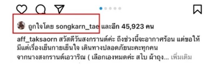 ท่ามกลางคนบันเทิงและแฟนคลับเข้ามากดไลก์และคอมเมนต์ชมความน่ารักกันรัวๆ งานนี้ หนุ่มสงกรานต์ คุณพ่อหล่อล่ำก็เข้ามาเคลื่อนไหวกลางไอจีสาวแอฟด้วย โดยการกดไลก์โพสต์รูปน้องปีใหม่แต่งชุดไทยด้วย
