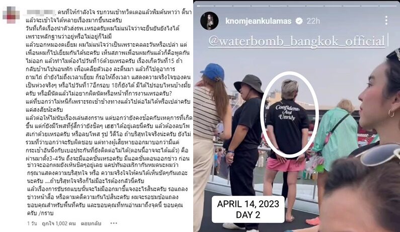 พร้อมทั้งตั้งคำถามว่า ติ๊นา บอกไปคลิปไปเที่ยวสงกรานต์วันที่ 13 แต่ ดีเจมะตูม บอกว่าเจอ ติ๊นา วันที่ 14 เมษายน ด้วยว่า “ยังไงคะไหนพี่บอกว่าคลิปวันที่ 13 ไงคะแต่ทำไมพี่ดีเจท่านนี้บอกว่าวันที่ 14 ล่ะคะโกหกหรอคะทำผิดแล้วไม่ยอมรับผิดหรอคะ #ติ๊นา”