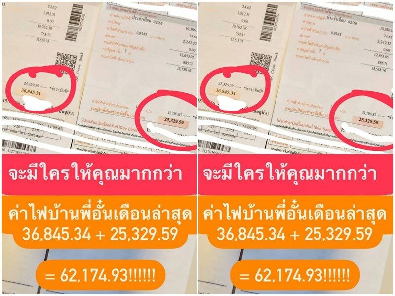 ไม่เว้นแม้แต่คุณพ่อลูกสอง “อั๋น ภูวนาท” ที่ตอนนี้บิลค่าไฟได้ส่งมาถึงหน้าบ้านแล้วเช่นเดียวกัน แต่พอเปิดดูกลับช็อกหนัก เพราะค่าไฟในบ้าน ‘อั๋ม’ เดือนมีนาคมที่ผ่านมา ใบแรก 36,845.34 บาท และใบที่สอง 25,329.59 บาท รวมทั้งหมด 62,174.93 หรือ เกินครึ่งแสนนั้นเอง