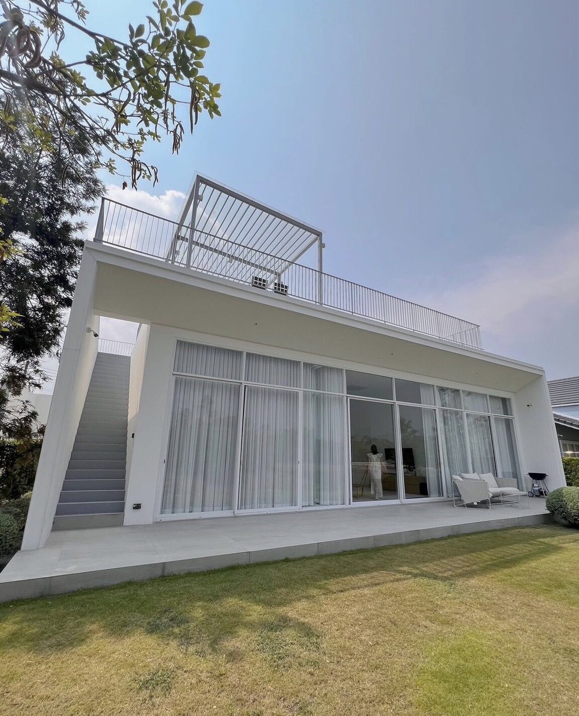 ถามเรื่องที่ประกาศขายบ้านที่นครนายก? “ใครสนใจสามารถเข้าไปดูได้นะคะ ที่ตัดสินใจขายเพราะว่า เกือบสามปีที่สร้างเสร็จ เราไม่มีเวลาไปเลย นับครั้งได้เลยที่เราได้ไป ก็เลยคุยกันว่าเราก็สร้างบ้านที่กรุงเทพอยู่ ตอนที่เราสร้างบ้านที่นครนายกเรายังไม่มีแพลนที่จะแต่งงานเลยด้วยซ้ำ พอเรามาสร้างบ้านในกรุงเทพ เราก็รู้สึกว่าเราอยากอยู่บ้านในกรุงเทพ ถ้าเกิดมีโอกาสในอนาคตเราค่อยไปสร้างกันใหม่