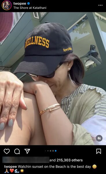 ล่าสุดทั้งคู่ควงกันไปเที่ยวภูเก็ต พร้อมทั้งโพสต์คลิปวีดิโอขณะที่หวานใจ ทาครีมกันแดดให้ พร้อมลงแคปชั่นว่า “Watchin sunset on the Beach is the best day”