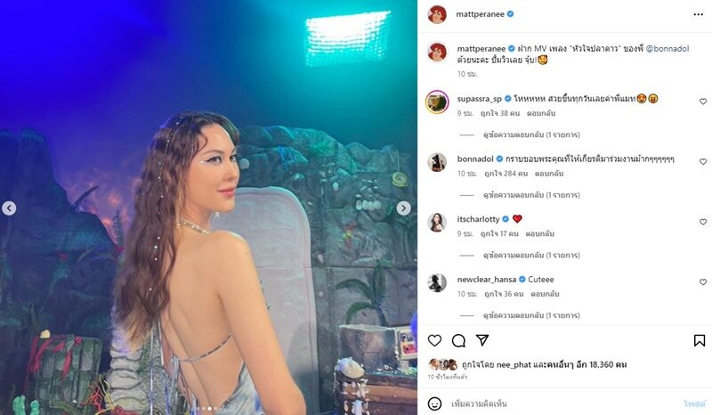 ด้าน แมท ภีรนีย์ ก็โพสต์ภาพตัวเองโมเมนต์สวยๆใน MV พร้อมข้อความว่า “ฝาก MV เพลง “หัวใจปลาดาว” ของพี่ @bonnadol ด้วยนะคะ ปั๊มวิวเลย จุ้บ!” พร้อมทั้งโพสต์คลิปเช่นเดียวกันลงไอจีสตอรี่ เป็นเพลงน่ารักทั้งจังหวะและเนื้อหา แถม แมท ร่วมเล่น MV ด้วยมีโมเมนต์น่ารักเรียกว่างานนี้แฟนๆ ถูกใจเพลงติดหูอีกแล้ว