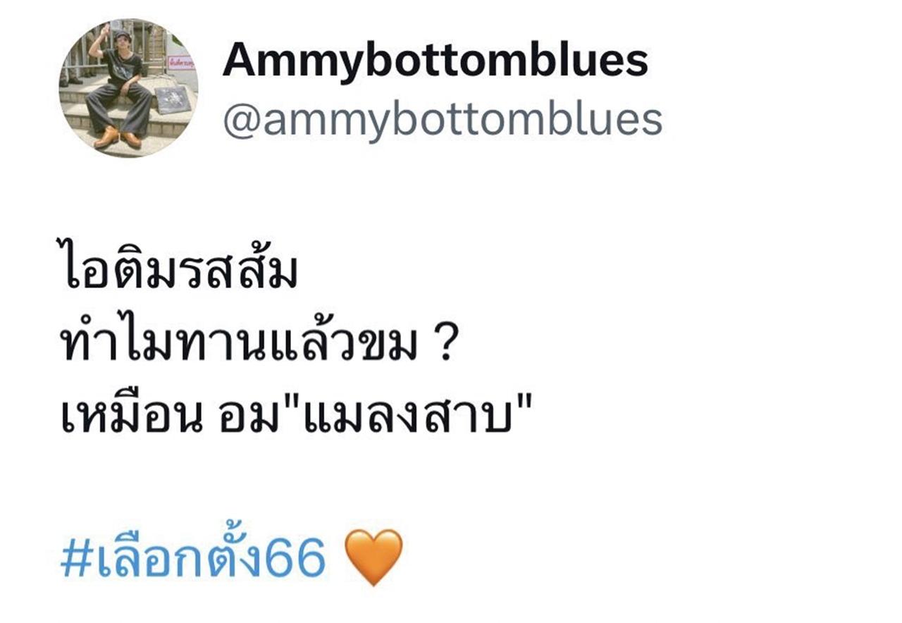 “ไอติมรสส้ม ทำไมทานแล้วขม เหมือนอมแมลงสาบ #เลือกตั้ง66 (อิโมจิหัวใจสีส้ม)”