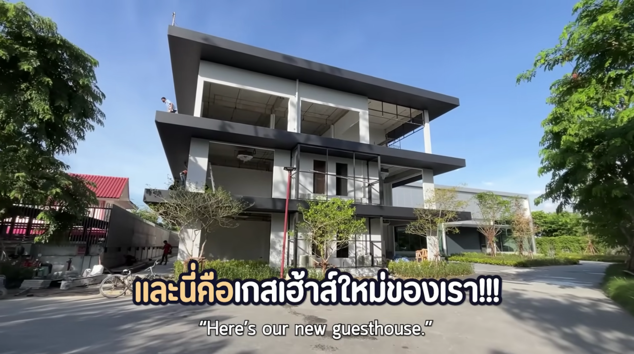 สำหรับเกสต์เฮาส์มีทั้งหมด 3 ชั้น และ 6 ห้องนอน พร้อมกับมีลิฟต์สำหรับคุณปู่ด้วย และชั้น 3 จะเป็นชั้นของคุณปู่ ไม่ใช่ห้องนอน แต่เป็นเพราะคุณพ่อมีของเก่าค่อนข้างเยอะ คุณปู่เลยจะทำให้ชั้น 3 เป็นเหมือนพิพิธภัณฑ์ของสะสมของคุณปู่ ซึ่งหลังนี้ป๊อกไม่ได้มีส่วนร่วมในการออกแบบใดๆ ทั้งสิ้น