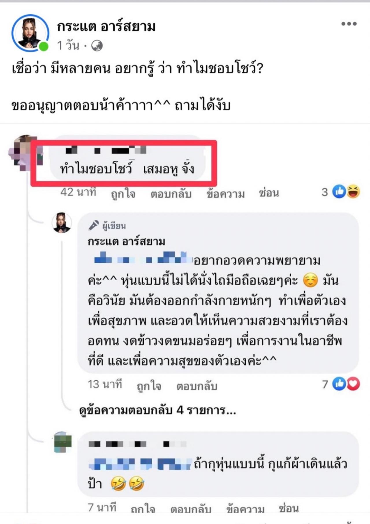“เชื่อว่า มีหลายคนอยากรู้ว่า ทำไมชอบโชว์? ขออนุญาตตอบน้าค้าาาา ถามได้งับ”