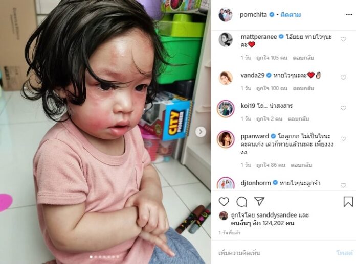 แห่สงสารน้องปริมเด็กน้อย อาการรุนแรงจนตกใจ ก่อนหน้านี้ เบนซ์ พรชิตา โพสต์ภาพน้องปรางที่เห็นแล้วถึงกับตกใจอาการหน้าตาผื่นแดงมาก พร้อมเผยว่า “วันนี้ปรางอายุ1ขวบ4เดือน แม่รู้ว่าหนูแพ้นมวัวตั้งแต่หนู4เดือน แต่คิดว่าแค่ไม่ย่อยโปรตีนในนมแล้วทำให้อ้วกออกมา
