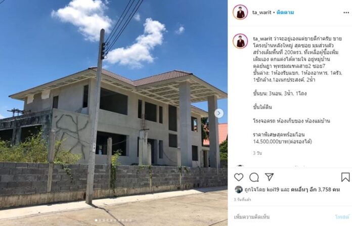 ตั้งใจไว้อยู่เองแต่ขายดีกว่า! ต๊ะ วริษฐ์ โพสต์ประกาศขายบ้านหลังใหญ่ 14.5 ล้าน