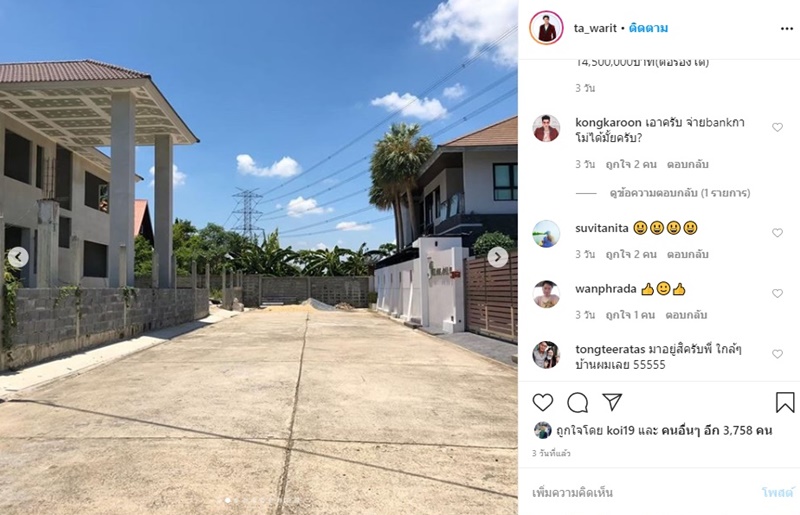 ตัดสินใจประกาศขายบ้านหลังใหญ่ – ต๊ะ วริษฐ์ ตัดสินใจขายดีกว่า โดยโพสต์ภาพบ้านหลายมุม บ้านหลังใหญ่ มุมส่วนตัว พร้อมประกาศขายด้วยว่า