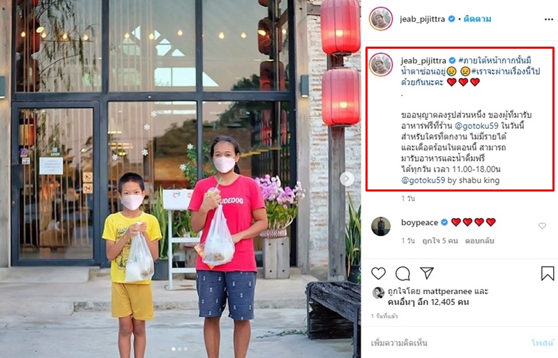 ดาราสาวสวยใจบุญอีกคน เจี๊ยบ พิจิตตรา ก่อนหน้านี้ประกาศให้ผู้เดือดร้อนในวิกฤตโควิด-19 ใครตกงาน ใครไม่มีรายได้ ให้เข้ามาที่ร้านอาหารของเจ้าตัว พร้อมช่วยเหลือเต็มที่นั้น