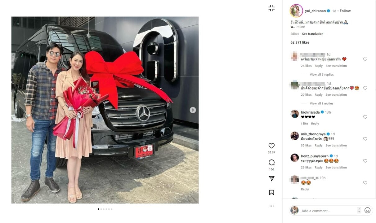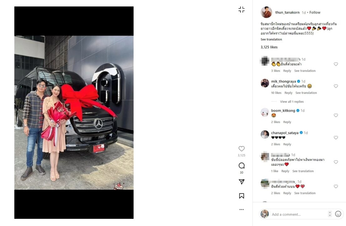 ความคืบหน้าล่าสุด ว่าที่คุณพ่อคุณแม่ป้ายแดง ยุ้ย-ธันน์ ก็ได้จับมือกันไปถอยรถป้ายแดงที่ซื้อไว้เพื่อไว้รอต้อนรับลูกสาว โดย ยุ้ย จีรนันท์ โพสต์ภาพพร้อมเขียนแคปชั่นว่า “วันนี้วันดี…มารับสมาชิกใหม่กลับบ้าน พ่อกับแม่เตรียมตัวพาลูกสาวและครอบครัว เที่ยวกันแบบยาวววๆ ไปเล้ยยย”